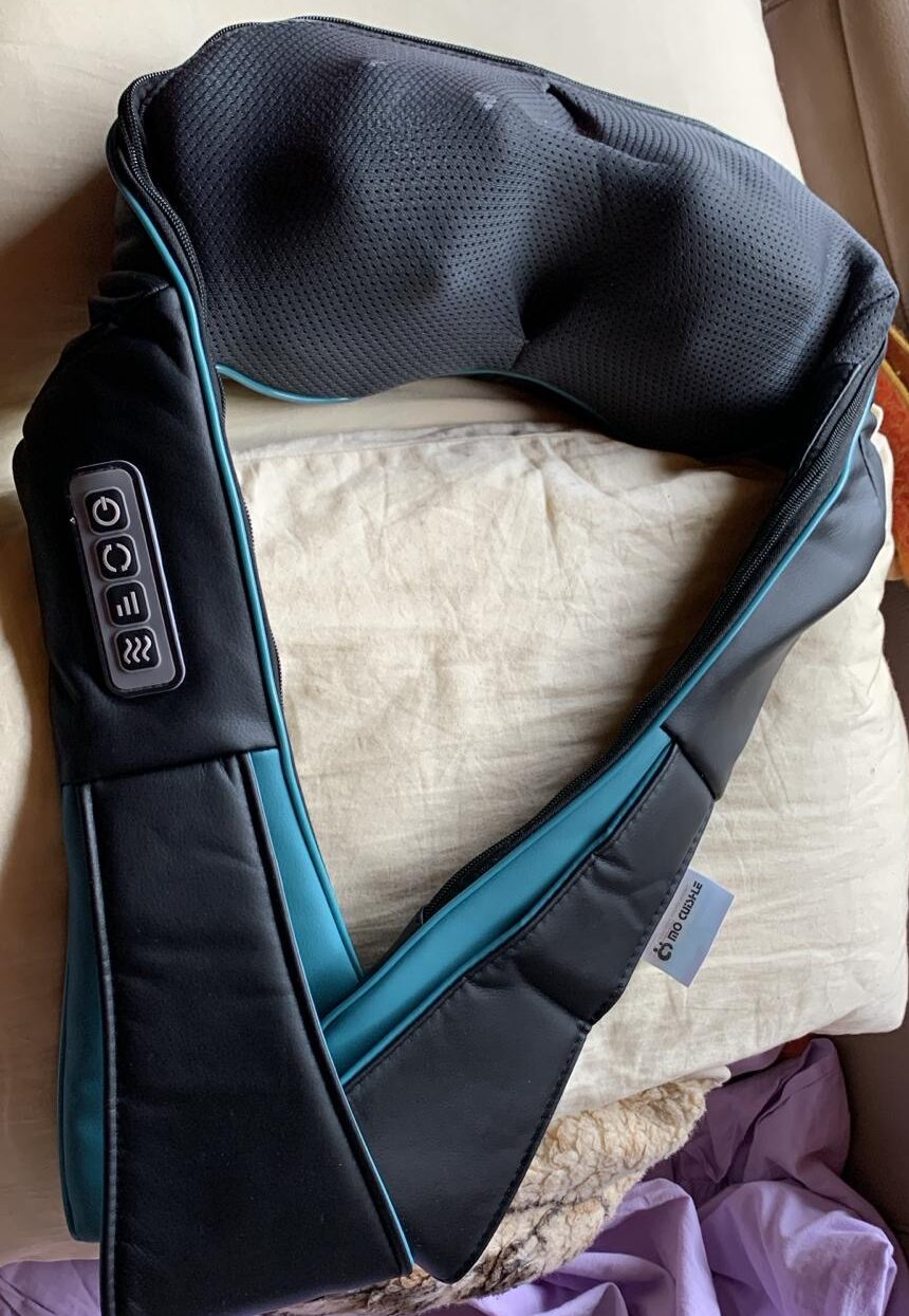 Ich sehe eine Frau, sie trägt ein langes T-Shirt, ein kurzes Leiberl drüber und ein warmes Kleid ohne Ärmel, und dann noch einen ärmellosen Mantel. Alles in dezenten Farben.